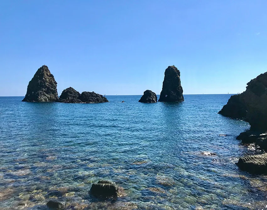 Our return cruise is a parade of natural beauty. We'll sail past the "Timpa", a massive volcanic ridge dropping straight into the sea, and offer a final look at the legendary Faraglioni (Cyclopean Isles) from a perspective few ever get to see. Join us for the ultimate snorkeling tour in Catania and Aci Trezza and see what lies beneath the legend.