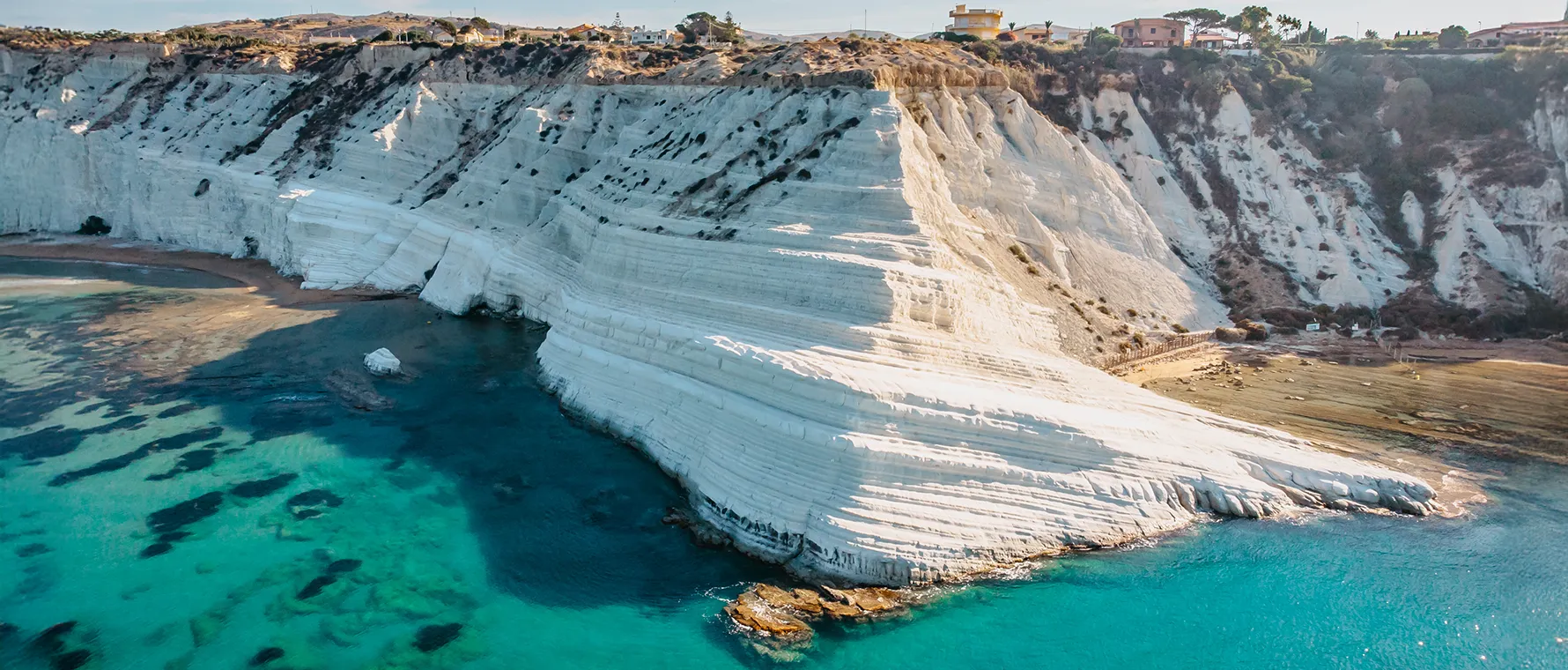 Cefalù è una delle perle della costa tirrenica: un borgo medievale affacciato su una lunga spiaggia dorata, con il suo profilo dominato dal Duomo normanno. Scendendo verso sud, Agrigento racconta un’altra epoca con la sua imponente Valle dei Templi, uno dei complessi archeologici greci più importanti al mondo. Poco lontano si trova la Scala dei Turchi, una spettacolare falesia di marna bianca modellata dal vento e dal mare, dal profilo che ricorda una grande scalinata naturale sul Mediterraneo. Questo contrasto tra roccia brillante, sabbia fine e acqua turchese la rende uno dei paesaggi più iconici della costa siciliana.